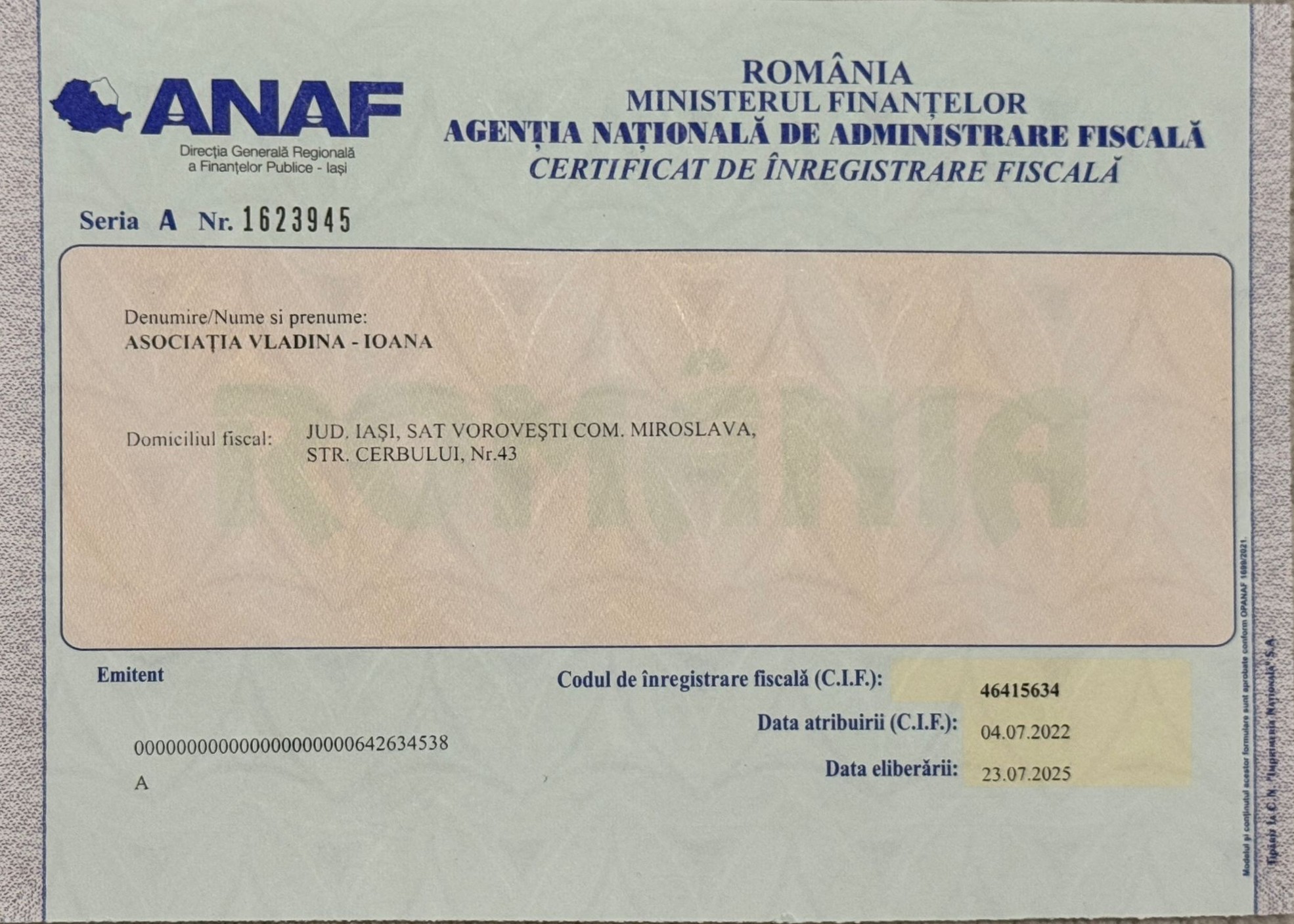 Asociația VLADINA-IOANA (CIF: 46415634),